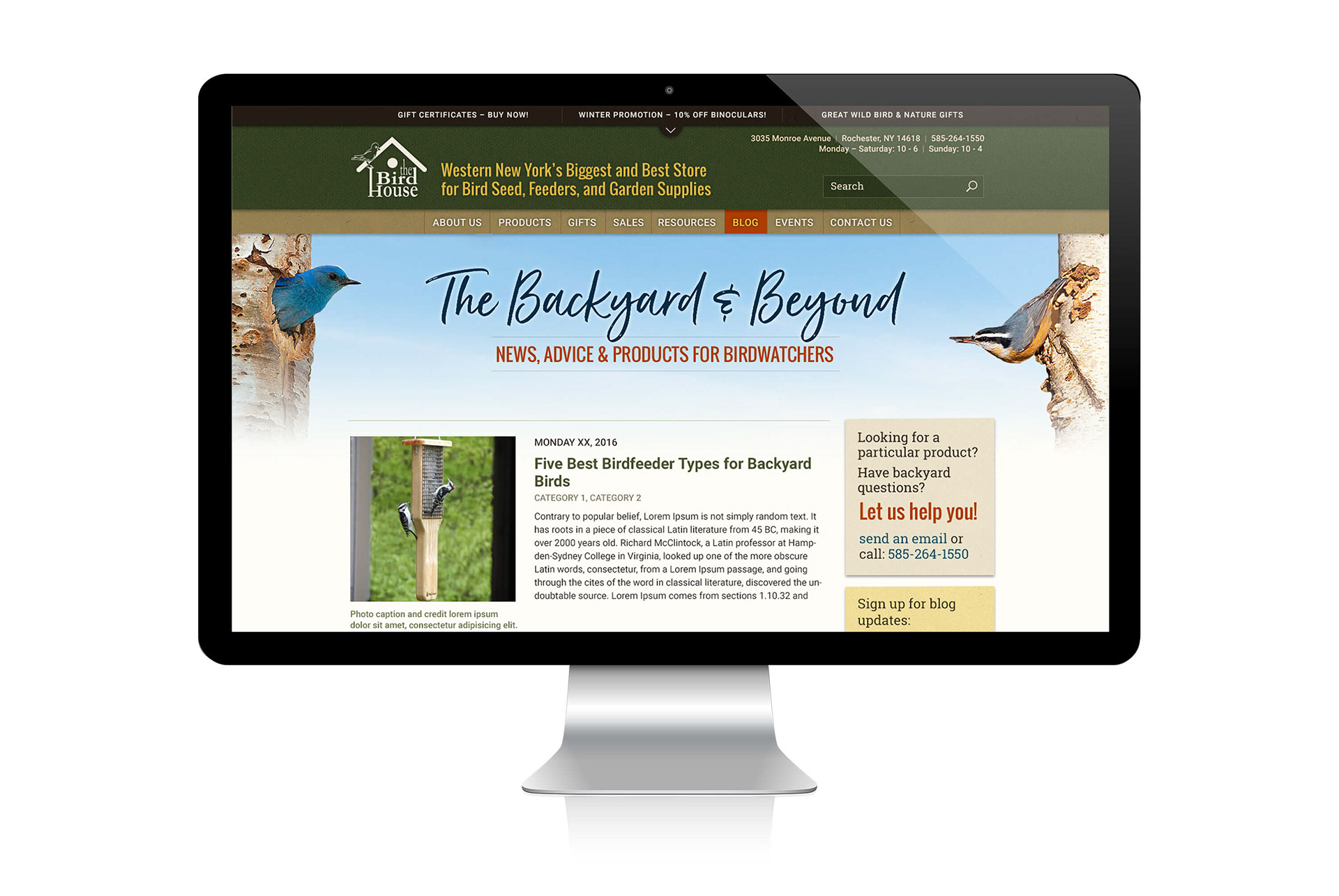 Website design for popular birding retailer in Rochester, NY